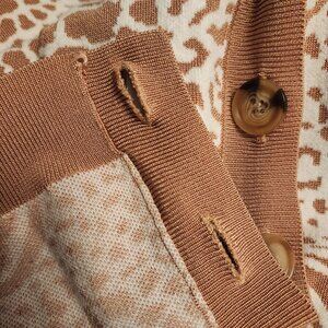 Ann Taylor Animal Pattern Knit Cardigan Size XS Light Bronze White