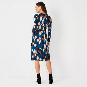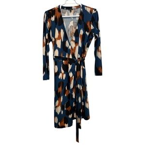 Ann Taylor Animal Print Belted Wrap Dress Knee Length Stretch Blue Brown Size 14