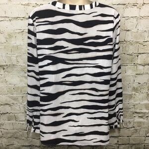Ann Taylor Womens Size 6 White Black Animal Print V Neck Popover Tunic Top In good used condition. No stains, tears or rips.