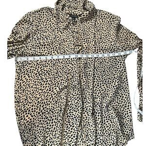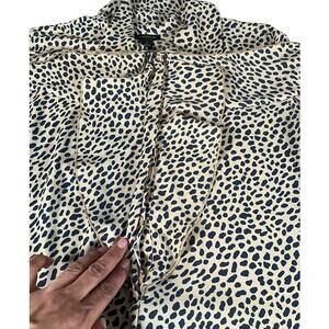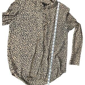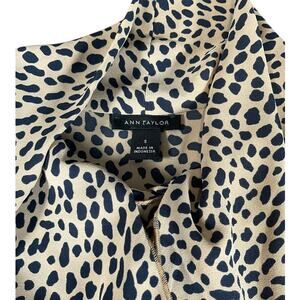 Ann Taylor Animal Print Ruffle Neck Blouse Size Small Long Sleeve Chic Workwear