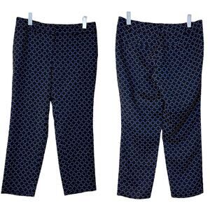 Ann Taylor Ankle Pants Devon Fit Blue Black Geometric Print Women's Size 8