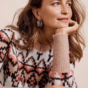Ann Taylor Aztec Geometric Print Sweater Pink Nude Block Small Like New