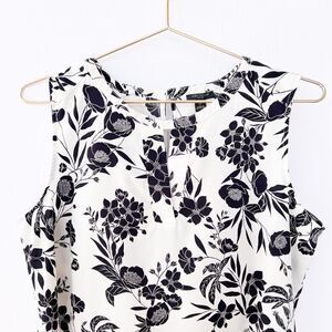 Ann Taylor Back White Floral Print Keyhole Sleeveless Top Petite Large