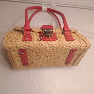 Ann Taylor Basket Purse with Pink Coral Detail
