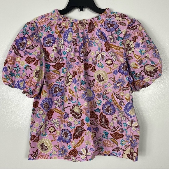 Ann Taylor Batik Floral Paisley Mock Puff Sleeve Blouse Sz L NWT