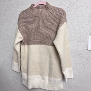 Ann Taylor Beige Colorblock Crew Neck Side Slit Sweater - Size S