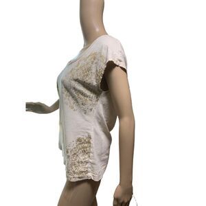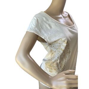Ann Taylor Beige & Gold Glitter Short Sleeve Scoop Neck Printed T-Shirt Size PM