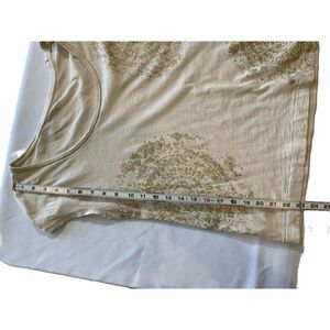 Ann Taylor Beige & Gold Glitter Short Sleeve Scoop Neck Printed T-Shirt Size Petite Medium