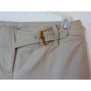 Ann Taylor Beige Pants Women size 2 Petite Bamboo Buckle Accent Straight Leg
