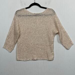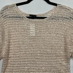 Ann Taylor Beige Sparkle Loose Weave Pullover Lightweight Sweater Size XXS