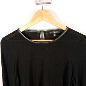Sophisticated simplicity defines this Ann Taylor top, a versatile piece that elevates any ensemble. Imagine the soft caress of 100% Italian merino wool against your skin, offering warmth and breathability in equal measure. The sleek black knit is beautifully contrasted by a faux leather trim around the neckline, adding a touch of modern edge. A subtle keyhole back closure adds a hint of allure. Perfect for a polished office look, a chic dinner date, or a casually elegant weekend outing.