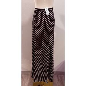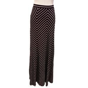 Ann Taylor Black Beige Chevron Stripe Maxi Skirt Medium Fall Office Chic New