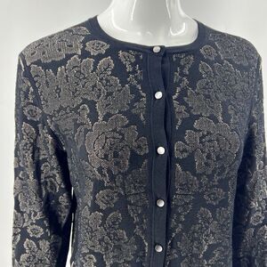 Ann Taylor Black Beige Nude Size L Illusion Floral Button Front Cardigan Sweater