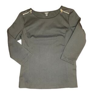 Ann Taylor Black Blouse With Silver Zipper Detailed Shoulder