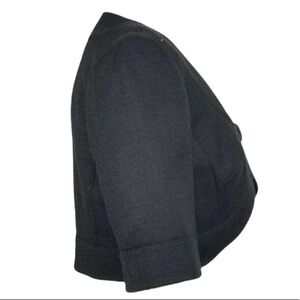 Black Bolero style jacket by Ann Taylor Classic design that never goes out of style; a stable in the closet One button clasp-upper front Over the breast length Wear dressy or casual Fully Lined