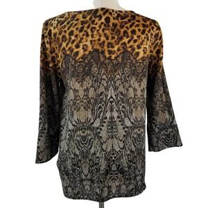 Ann Taylor Black Brown Gold Leopard Paisley Funky Boho Top Size Small
