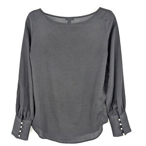 Ann Taylor Black Chiffon Crepe Pearl Button Cuff Mutton Sleeve Classic Blouse XS