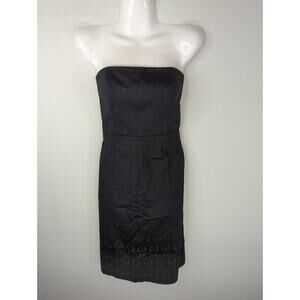 Ann Taylor Black Cotton Blend Embroidered Eyelet Strapless Dress Size 4