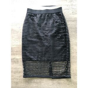 Ann Taylor Black Crochet Overlay Midi Skirt - 2P