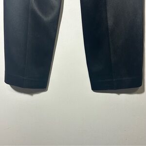 These Ann Taylor dress pants in classic black feature a straight-leg cut and a flat front design. Ideal for professional settings, they offer a timeless style with clean creases and a full-length fit, making them a versatile addition to any formal wardrobe.
