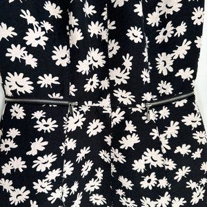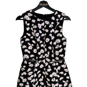Ann Taylor Black Floral Daisy Sleeveless Fit & Flare Dress 0 zipper details