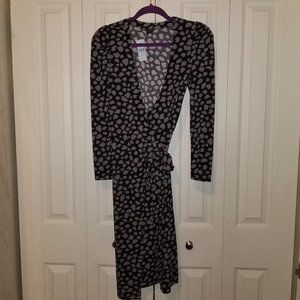 Ann Taylor Black Giraffe Print Matte Jersey Wrap Dress