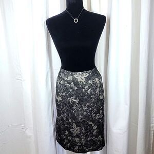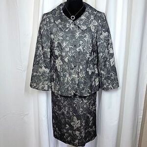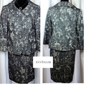 Ann Taylor Black Gray Floral Barcode Jacket and Skirt Set