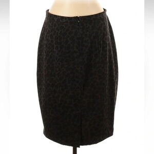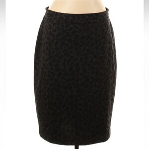 Ann Taylor Black & Grey Leopard Print Classic Knee Length Pencil Skirt Size 12 L