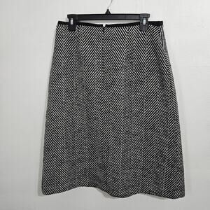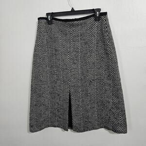 Ann Taylor Black Herringbone A Line Wool Blend Midi Skirt 8.