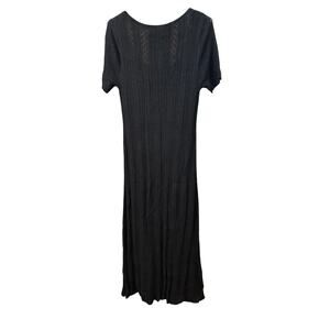 Ann Taylor Black Knit Midi Dress Scoop Neck Short Sleeve Lined Career Size L NWT