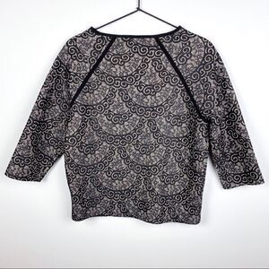 Ann Taylor Black Lace & Cream Structured Long Sleeve Sweatshirt Top S