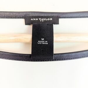 This piece is so crisp. The sleeves are 3/4 length, the white fabric is kind of sheer, and the faux leather is in perfect condition. Great to wear over a cami and some jeans for a business casual look or wear a fun black bralette underneath and some jeans shorts for a going out outfit. It's in excellent condition, no stains or flaws.