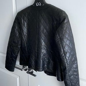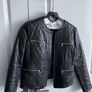 Ann Taylor Size 10 T Black Leather Jacket with gold zipper pockets.