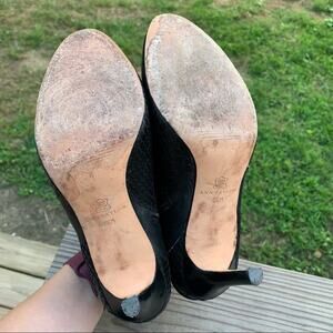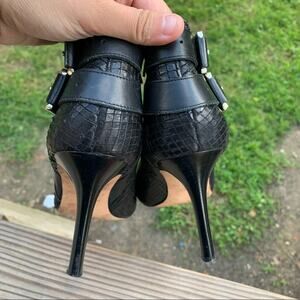 Ann Taylor Black Leather Stiletto Booties Faux Snakeskin