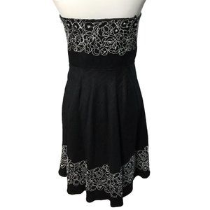 Ann Taylor Black Lined Linen Strapless Floral Embroidered Dress Sz 8 P