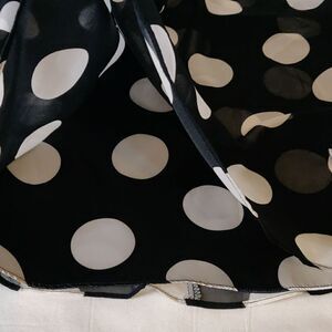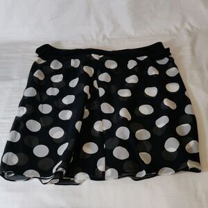 So cute black polyester skirt covered in white polka dots! Bonus sheer layer in same print makes this skirt even more adorable! Pair this with a bright red or green too and some fancy black heels to make up the perfect holiday outfit!