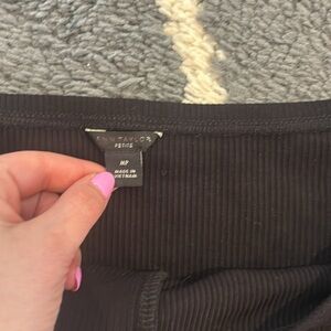 Ann Taylor Black Off-Shoulder Ribbed Button-Down Top