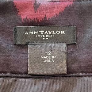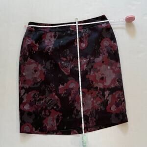 Ann Taylor Black Purple Pink Watercolor Abstract Floral Print Pencil Skirt 12