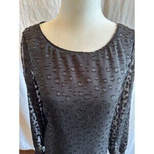 Ann Taylor Black Semi Sheer Long Sleeve Petite Dress Sz 2P