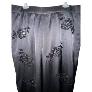 Ann Taylor Black Sequin Satin Floral Pants Plus Size XXL Classic Luxury Glamour