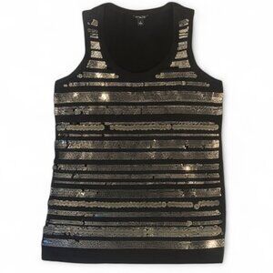 Stylish black tank with shimmering sequins. Ideal for evening wear. Adds elegance to any look. Get ready Early for the Holidays this year.