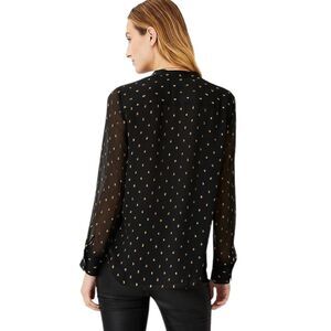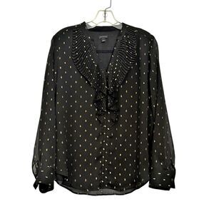 Ann Taylor Black Shimmer Clip Dot Ruffle Blouse size Small