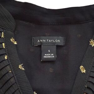 Ann Taylor Black Shimmer Clip Dot Pleated Ruffle Blouse