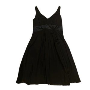 Ann Taylor Black Silk Cinched Waist Pleated Dress