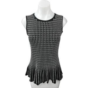 Ann Taylor Black Sleeveless Peplum Embroidered Knit Tank Top Blouse Size S