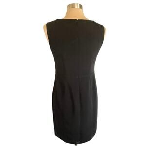 Ann Taylor Black Sleeveless Sheath Dress Size 8 Petite Quiet Luxury Elegant Classic. Fitted through bodice with narrow banding accents that accentuate shape. The fabric is woven with a slight stretch. Fully lined. Kick pleat in back. Knee length. Wear with a jacket for work wear. Also perfect for going out or date night.
