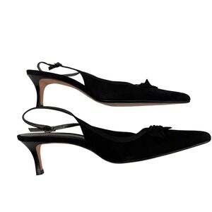 Ann Taylor Black Slingback Heels Pointed Toe Bow Embellished size 7.5M