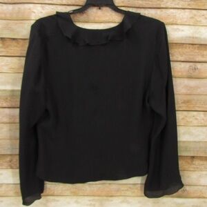 Ann Taylor Black Split Front Tie Collar Silk Cover M