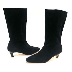 Ann Taylor Black Suede Nip Toe Kitten Skinny Heel Mid Shaft Boots 9.5 NEW