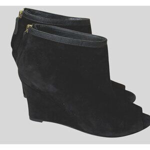 Ann Taylor Black Suede Peep Toe Wedge Booties 7.5M